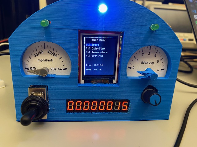 An embedded car dashboard using an MSP432 and various peripheral devices. The car dashboard used I2C and SPI to communicate with peripheral devices and create a user friendly interface. This interface included an odometer, blinkers, speedometer and a menu system using an LCD display. The menu could be customized using various colors and displayed the time, temperature and speed on different menus. The dashboard also could take commands from a smartphone over bluetooth using a simple off the shelf peripeheral that sent data to the MSP432. This project was selected to be 1 of 3 shown off at GVSU's project showcase (voted on by classmates). It utilized embedded C and understanding various protocols used in embedded systems like I2C, SPI, as well as other lowlevel concepts